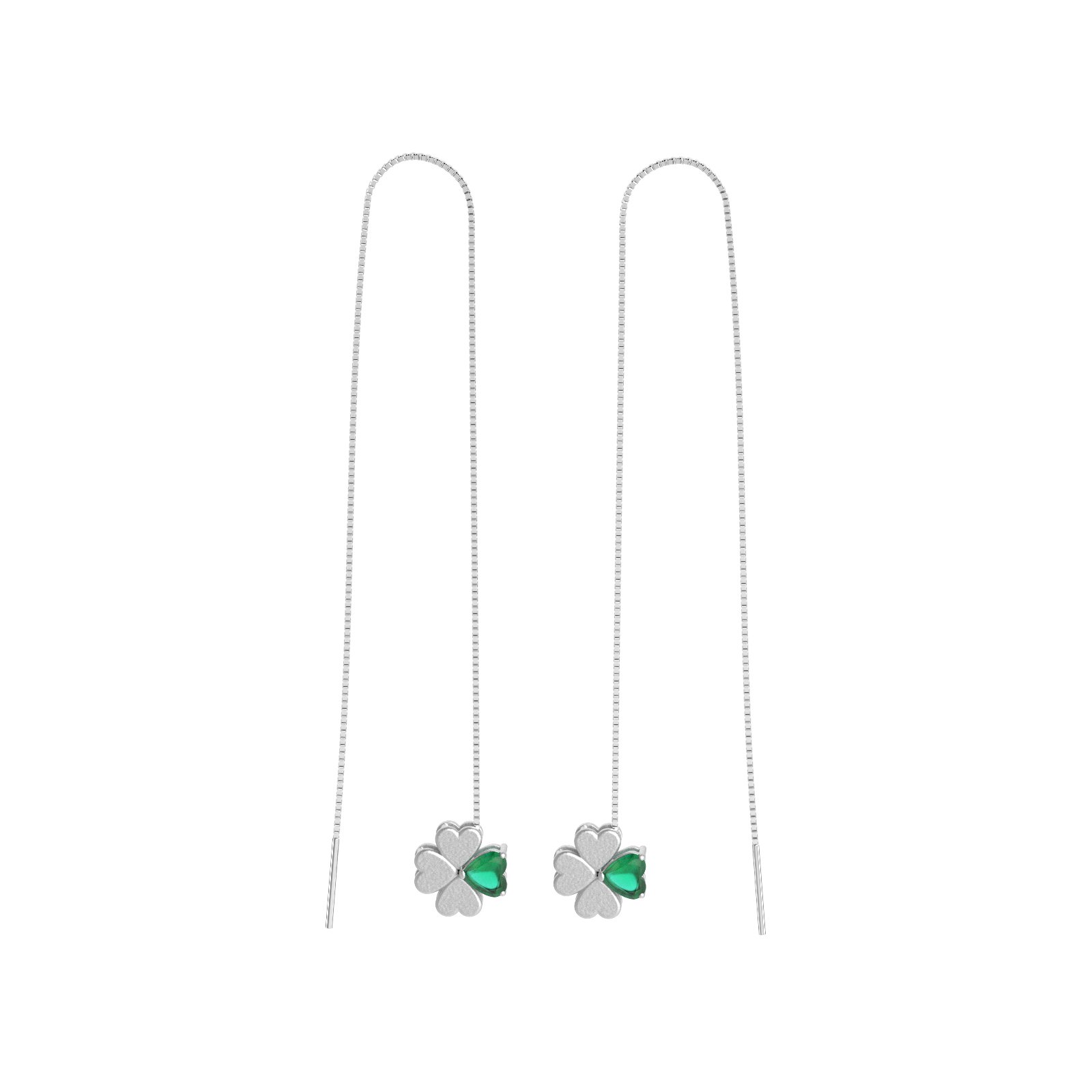 Brinco de Corrente Trevo da Sorte Ouro Branco